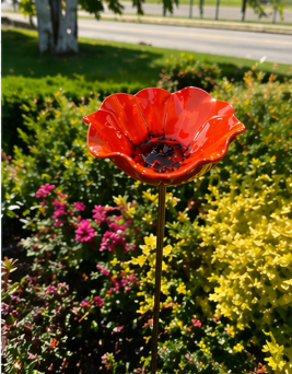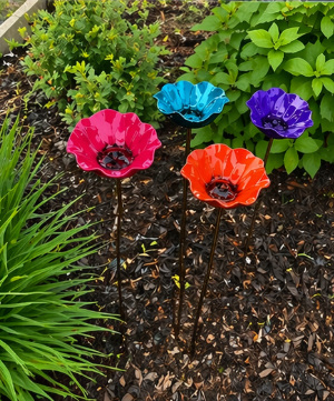 Turn any outdoor corner into a lively and inviting garden space. This handmade metal flower stake works as both a decorative sculpture and a functional garden accent. Its glossy petals reflect sunlight throughout the day, creating a beautiful focal point among plants, lawns, and pathways. Whether placed in a flower bed or near a walkway, it adds instant color and personality to your outdoor environment. Instead of ordinary garden décor, this flower brings movement, light, and natural charm that makes your garden feel alive.