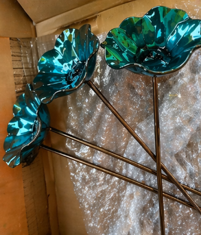 Each flower stake is carefully shaped and finished by hand, giving every piece its own subtle character. The metal petals are formed to resemble a blooming flower, creating a sculpture that feels both artistic and natural. The glossy finish adds depth and vibrancy to the design, allowing the flower to catch the light beautifully. Instead of mass-produced plastic décor, this handcrafted metal piece offers a more refined and durable decorative element for your outdoor space.